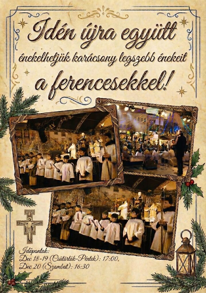 December 18., 19., 20. délután 4 órakor a tavalyi szép emlékeinket felidézve újra együtt éneklünk a főtéren karácsony ünnepére készülve. Ezért minden adventi vasárnap a 10-es szentmise végén egy 5-8 perces énekpróbát tartunk.